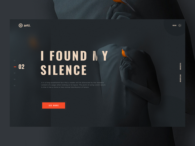 Типографика является одной из наиболее заметных особенностей его сайта. Это наиболее заметно в центре главной страницы, где вы можете увидеть его логотип.