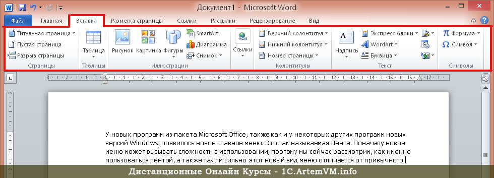 Это вторая вкладка, присутствующая в строке меню или на ленте. Он содержит различные элементы, которые вы можете вставить в слово Microsoft. Он включает в себя такие параметры, как таблицы, текстовые рисунки, гиперссылки, символы, диаграммы, строку подписи, дату и время, фигуры, верхний и нижний колонтитулы, текстовые поля, ссылки, поля, уравнения и т. д., как показано на рисунке ниже: