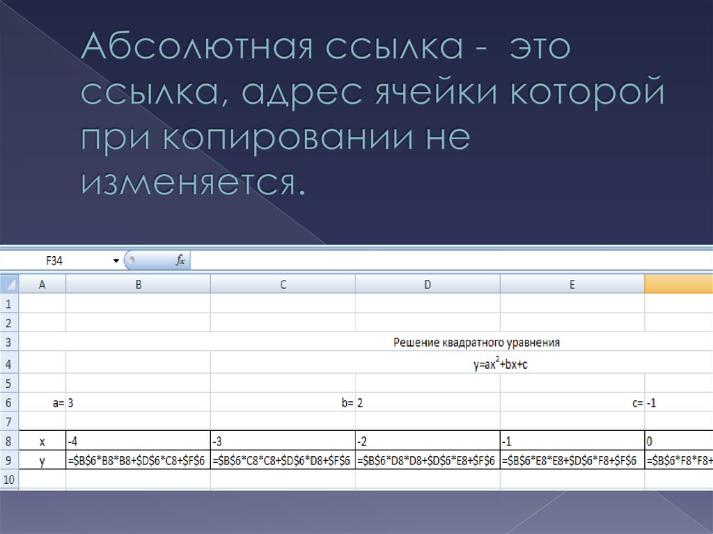 - Переключение между относительными, абсолютными и смешанными ссылками