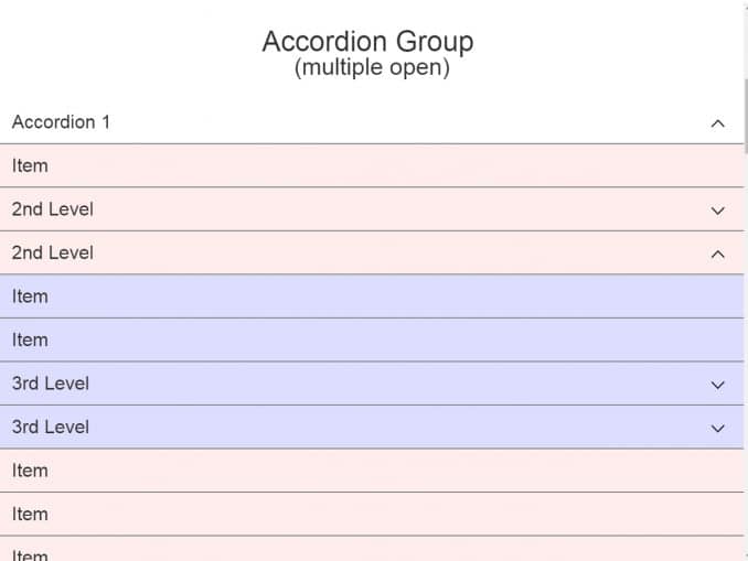 Многоуровневый аккордеон CSS и JS (jQuery). Это имеет функцию предварительного открытия группы списка при начальной загрузке страницы, просто добавив класс is-open к элементу списка, который имеет класс has-children . HTML и CSS написаны с использованием синтаксиса БЭМ.