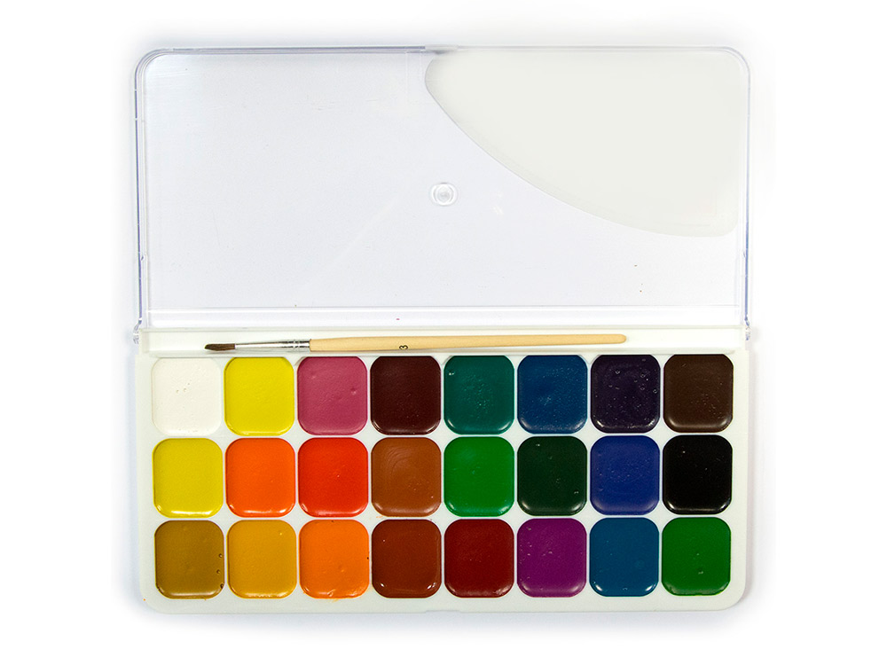 - Всегда смачивать акварель в кюветах водой, чтобы избежать растрескивания краски;