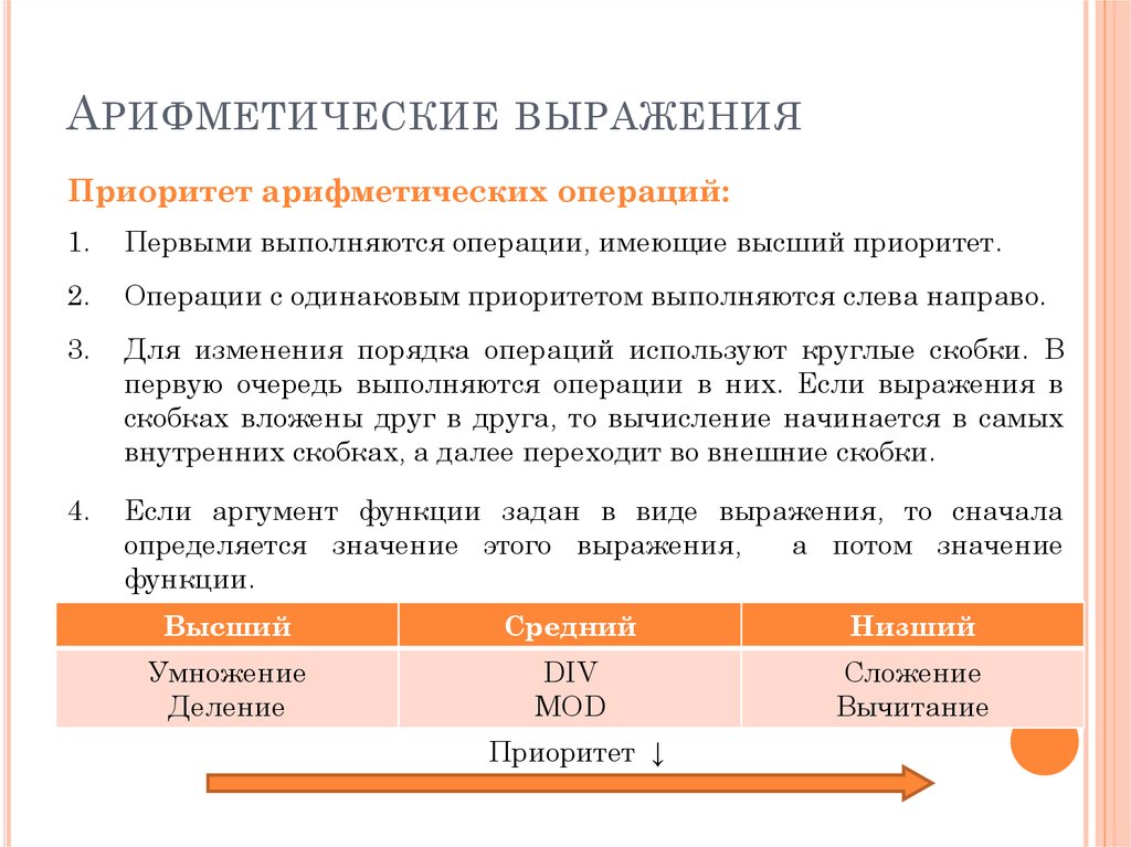 ΠΠΎΡΠ»Π΅Π΄ΠΎΠ²Π°ΡΠ΅Π»ΡΠ½ΠΎΡΡΡ Π²ΡΠΏΠΎΠ»Π½Π΅Π½ΠΈΡ ΠΎΠΏΠ΅ΡΠ°ΡΠΈΠΉ Π² Π°ΡΠΈΡΠΌΠ΅ΡΠΈΡΠ΅ΡΠΊΠΎΠΌ Π²ΡΡΠ°ΠΆΠ΅Π½ΠΈΠΈ ΡΠΎΠΎΡΠ²Π΅ΡΡΡΠ²ΡΠ΅Ρ ΠΏΡΠΈΠ½ΡΡΠΎΠΉ Π² ΠΌΠ°ΡΠ΅ΠΌΠ°ΡΠΈΠΊΠ΅: