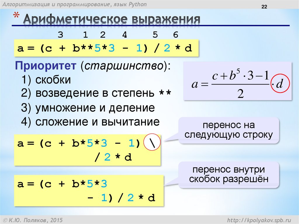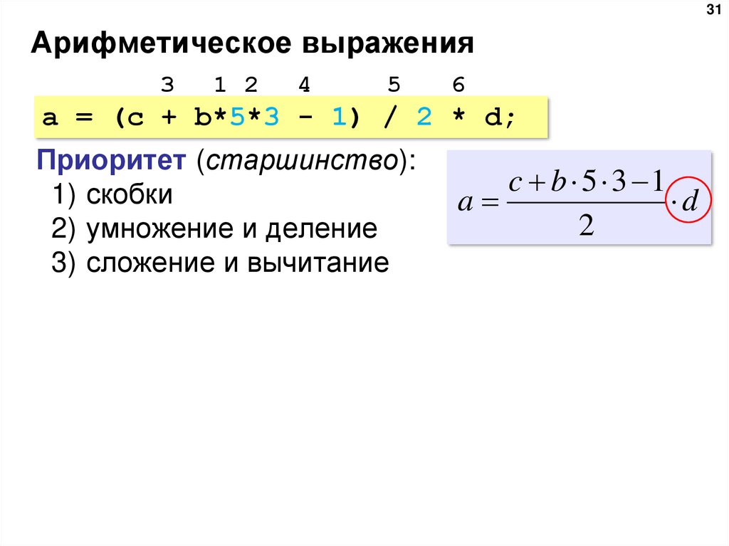 ΠΡΠΈ Π½Π΅ΠΎΠ±Ρ ΠΎΠ΄ΠΈΠΌΠΎΡΡΠΈ Π½Π°ΡΡΡΠΈΡΡ ΠΏΠΎΡΠ»Π΅Π΄ΠΎΠ²Π°ΡΠ΅Π»ΡΠ½ΠΎΡΡΡ Π²ΡΠΏΠΎΠ»Π½Π΅Π½ΠΈΡ Π΄Π΅ΠΉΡΡΠ²ΠΈΠΉ ΠΈΡΠΏΠΎΠ»ΡΠ·ΡΡΡ ΡΠΊΠΎΠ±ΠΊΠΈ. ΠΠ°ΠΏΡΠΈΠΌΠ΅Ρ, Π+Π/(Π‘+D) ΠΈΠ»ΠΈ (0.2-v)*cos(0.5).