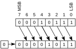 | Логический сдвиг влево | Логический сдвиг вправо |