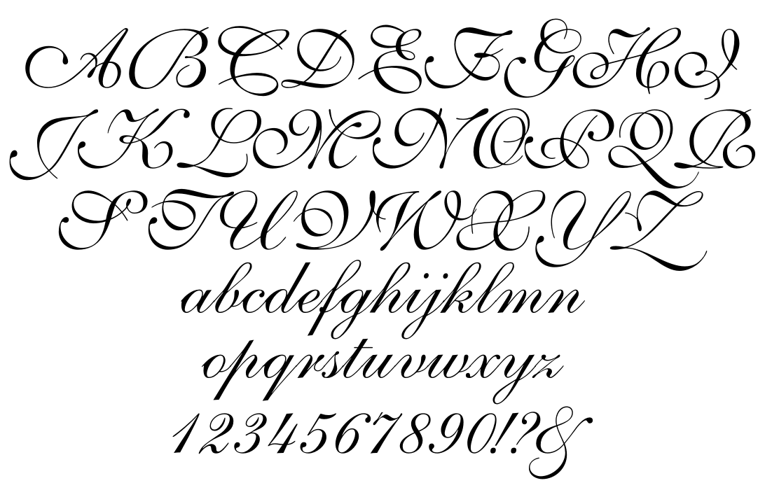 К этой группе относятся шрифты, по рисунку имитирующие средневековые рукописные почерки ширококонечным пером, распространенные в XIII-XVI веках главным образом в северной Европе. Их буквы характеризуются, как правило, узкими пропорциями, сильным контрастом, изломами штрихов, большой насыщенностью и высокой декоративностью.