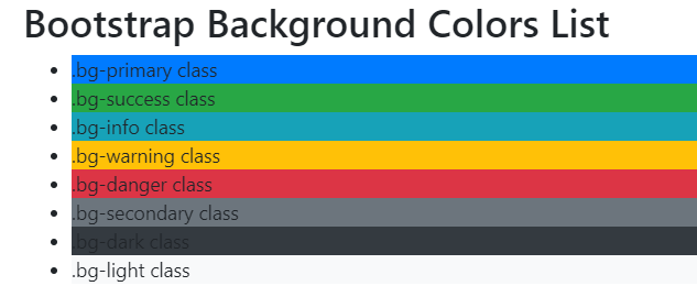 Подобно контекстным классам цвета текста, легко установить фон элемента в любой контекстный класс. Якорные компоненты будут темнеть при наведении, как и текстовые классы. Фоновые утилиты не устанавливают цвет , поэтому в некоторых случаях вам может понадобиться использовать утилиты .text-* .