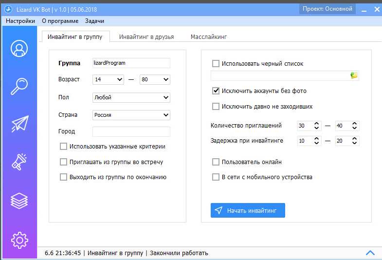 Бесплатная версия программы поддерживает функцию накрутки друзей в социальной сети Вконтакте.