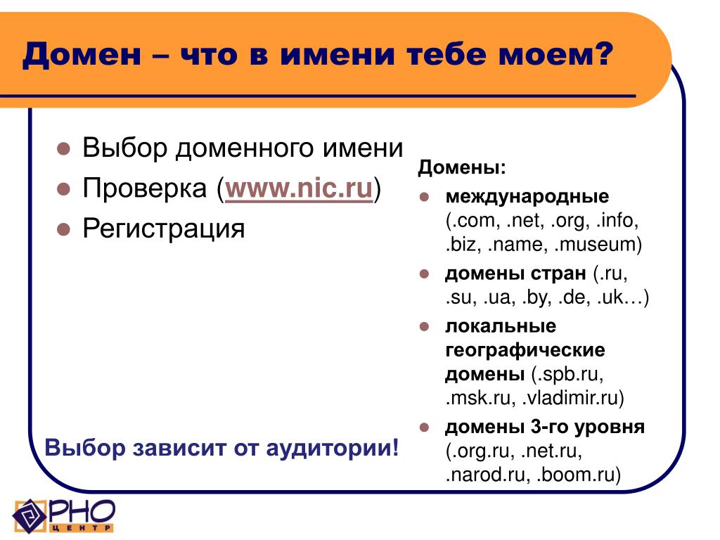 Создатели доменов придерживаются определенной иерархии, состоящей из нескольких уровней. Доменный адрес выше расположенного уровня базируется на базе домена низшего порядка. Например, домен третьего уровня повторяет комбинацию символов доменов предыдущих уровней. На первом этапе пользователь придумывает такое запоминающееся имя своего сайта, чтобы оно было “на слуху”, а затем переходит к стадии регистрации домена, который нельзя купить, а можно лишь арендовать у регистратора на определенный период времени с возможностью продления срока пользования.