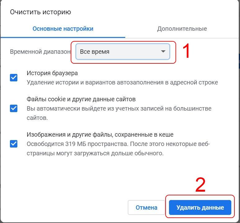 Выберите вкладку «Основные» и при необходимости очистите кеш. Источник