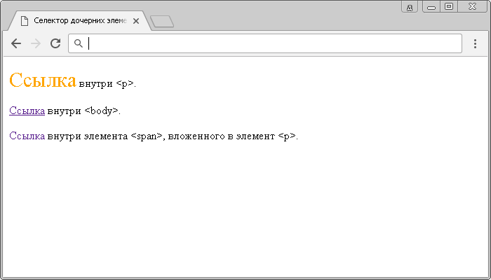 Пример 11.3. Использование дочерних селекторов