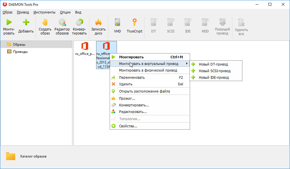 Daemon Tools Pro – профессиональная программа для работы с образами дисков и виртуальными приводами. Позволяет монтировать образы из приложения или из Проводника, создавать образы на основе физических дисков и систематизировать их. Поддерживается большинство типов файлов образов, конвертация, редактирование и ручная настройка эмуляции.
