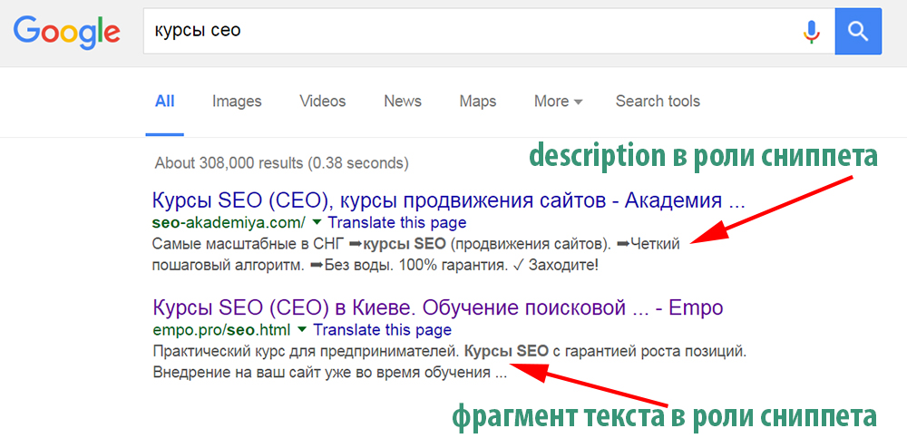 - Как description отображается в Google