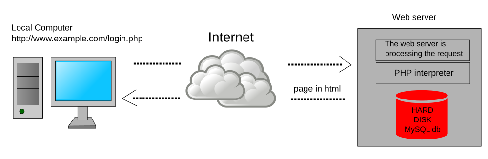 Динамические веб-страницы написаны на серверных языках сценариев, таких как PHP. Этот скрипт позволяет подключиться к базе данных для рендеринга контента на сервере перед его отправкой посетителям.