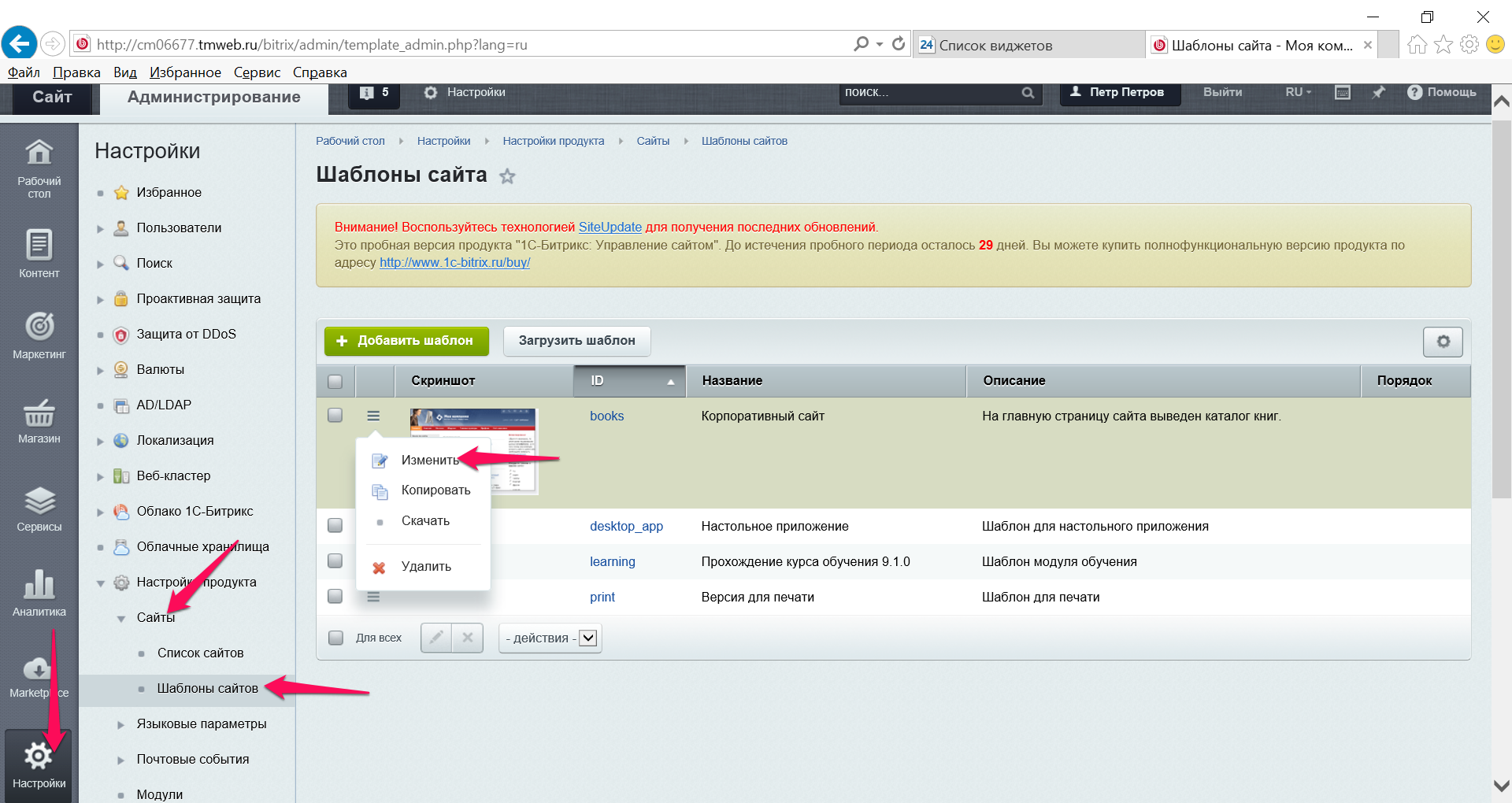 - В адресной строке браузер идентификатор будет написан после параметра «act=»;