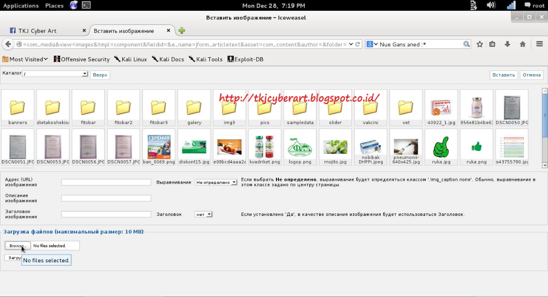 С помощью экрана вставки изображений Вы также можете загружать [в свою систему Joomla!] новые изображения.