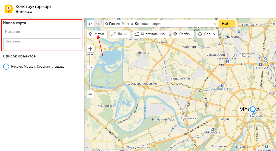 1. Точки. Произвольное количество точек, для каждой задается Текст, Цвет (из предустановленных в Яндекс.Картах), Текст балуна