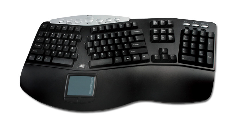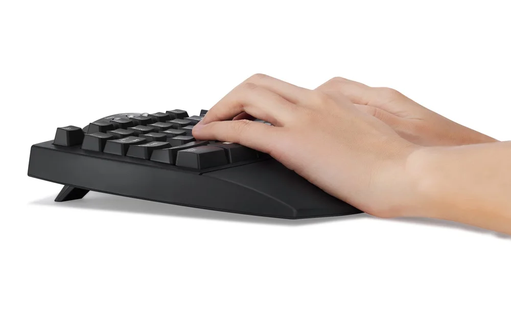 Клавиши широко разнесены, чтобы соответствовать расстоянию между руками. По словам производителей, вогнутая форма очень удобна. Функциональные клавиши вроде Enter, CTRL и ALT разнесены так, чтобы их можно было достать большими пальцами.