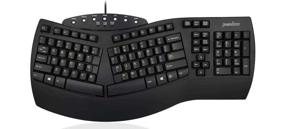 Идеальная с точки зрения эргономики клавиатура размещает все необходимые клавиши на расстоянии вытянутой руки, не заставляя вас тянуться, сгибать запястья, выкручивать руки или сгибать лопатки. Это требует некоторой настройки — у всех нас разная ширина тела и размах крыльев — поэтому для гарантированной подгонки вам понадобится разделенная клавиатура, такая как Kinesis Freestyle Edge RGB или Matias Ergo Pro. Разделив клавиатуру на две половины, вы можете контролировать ширину и форму клавиатуры, чтобы вы могли изменить ее положение в соответствии со своим телом.