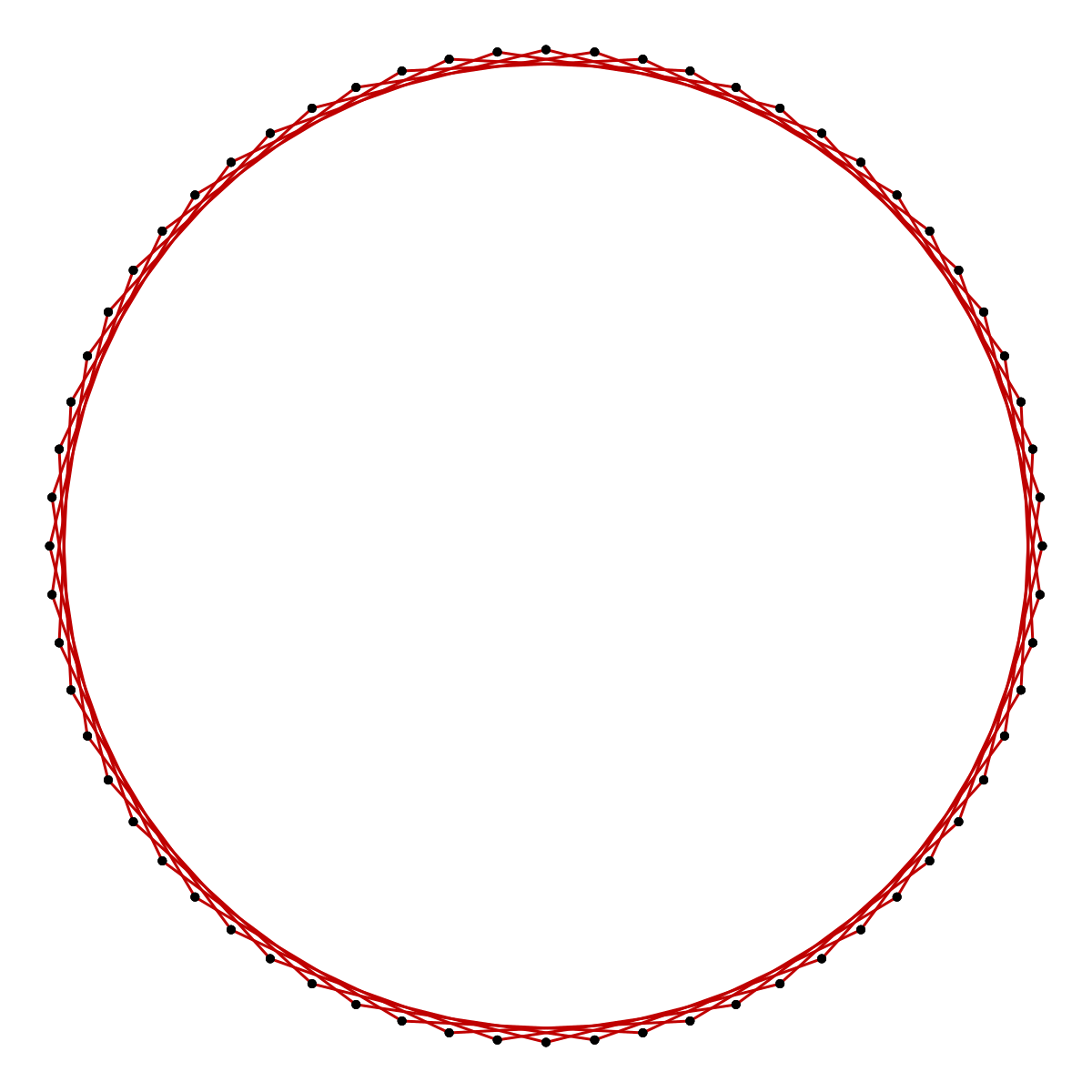 | Где в ловце снов спрятана хорда? Представим ловец снов. Когда его изготавливают, натягивают нитку от точки на ободе до точки на другом конце обода. Чтобы получился красивый узор, нитки должны быть разной длины и проходить через разные точки – не обязательно через центр. |