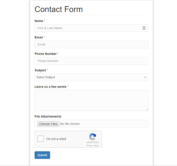 Теперь вы можете добавить форму, которая просто говорит «Запрос обратного звонка» и попросить людей ввести свое имя, номер телефона и любую другую дополнительную информацию, которую вы хотите от них.