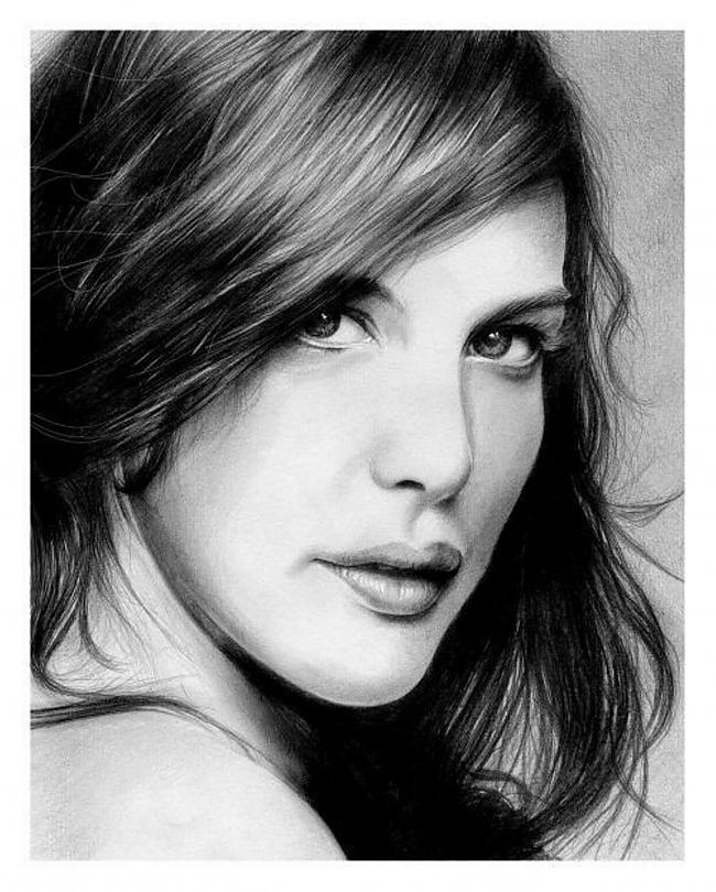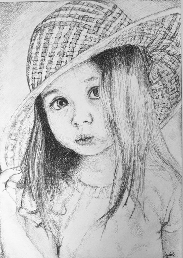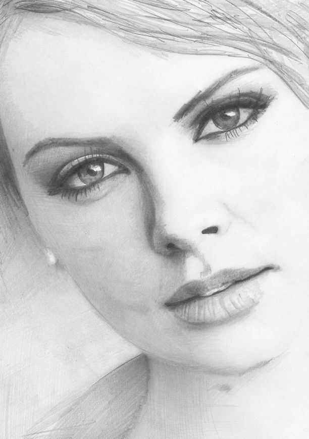 Портрет девушки, чёрно-белый, простым карандашом, формат а4