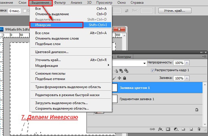 Щелкните левой кнопкой мыши по голубому разделу (цвет фона) на изображении женской модели. Обязательно выберите внутренние места, такие как промежуток между пальцами и пространство чуть ниже шеи женской модели. 9. Для завивки инвертируйте выделение: с «фонового изображения» на «девушка».