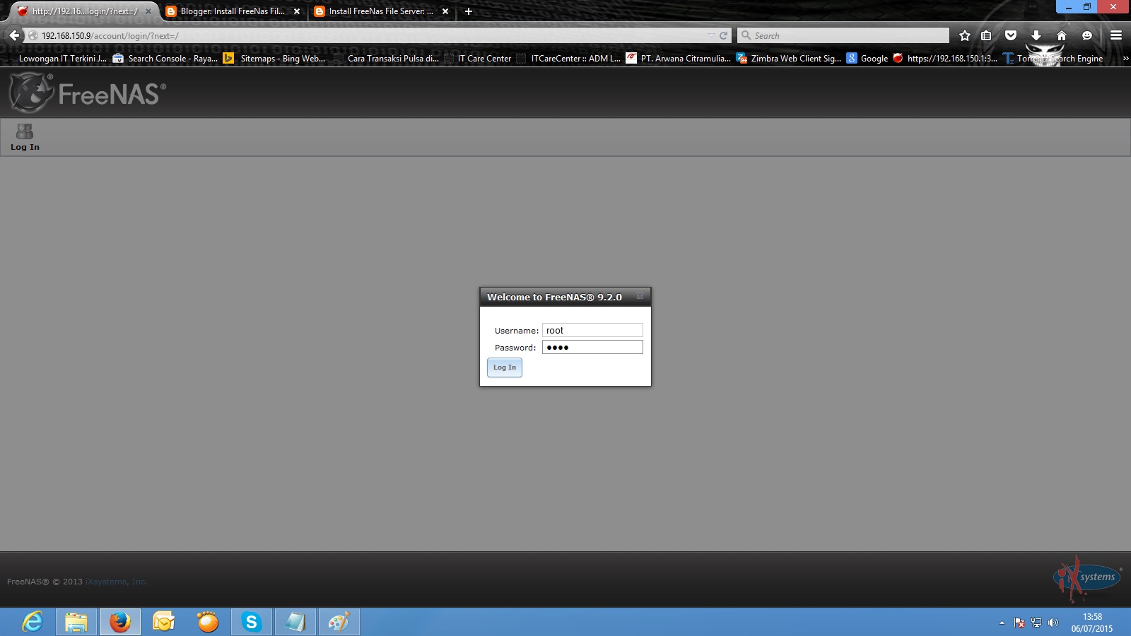Снова войдите в веб-интерфейс FreeNAS.