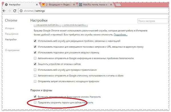 - Открывай последовательно «Настройки» — «Дополнительные» — «Password and forms» — «Настройки»