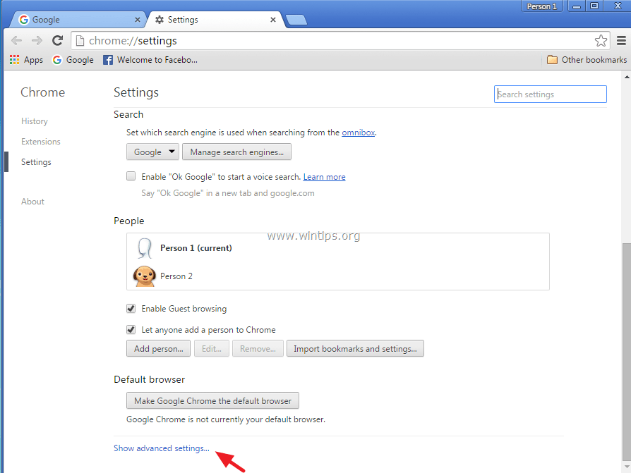 Шаг 2: Выберите « Показать дополнительные настройки » и перейдите к « Пароли и формы ».