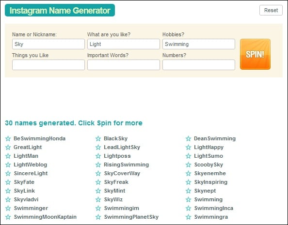 Существует множество генераторов имен в Instagram. Использовать этот генератор имен в Instagram довольно просто и легко. Он генерирует для вас 5 случайных имен пользователей. Да! Вам будет предложено 5 вариантов на выбор.