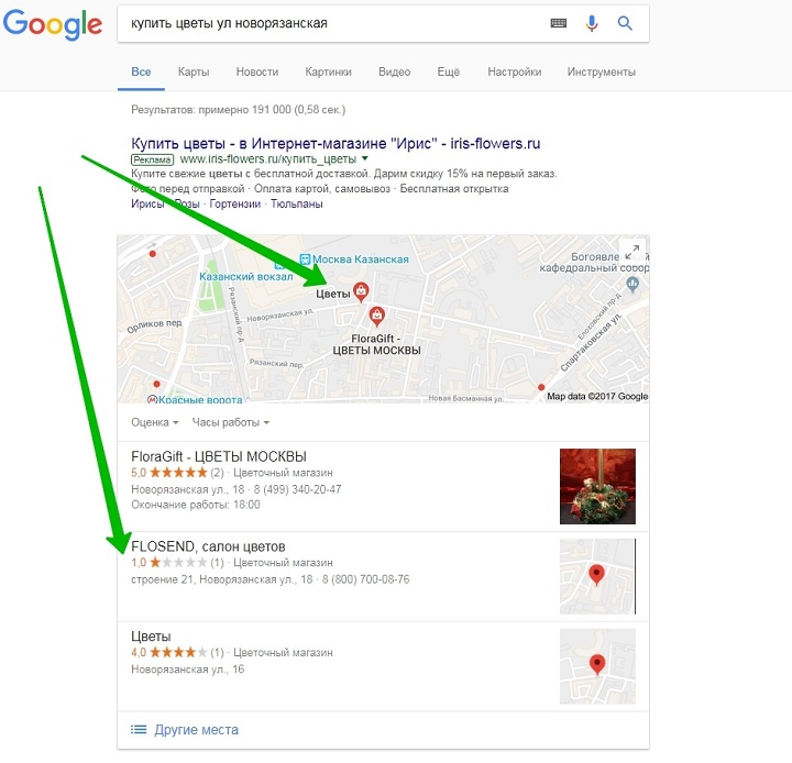 Отдельный поток трафика получают предприятия, контактные данные которых добавлены на Google карты. Чтобы добавить компанию, следует предварительно зарегистрироваться в сервисе «Google My Business». Сервис дает возможность: