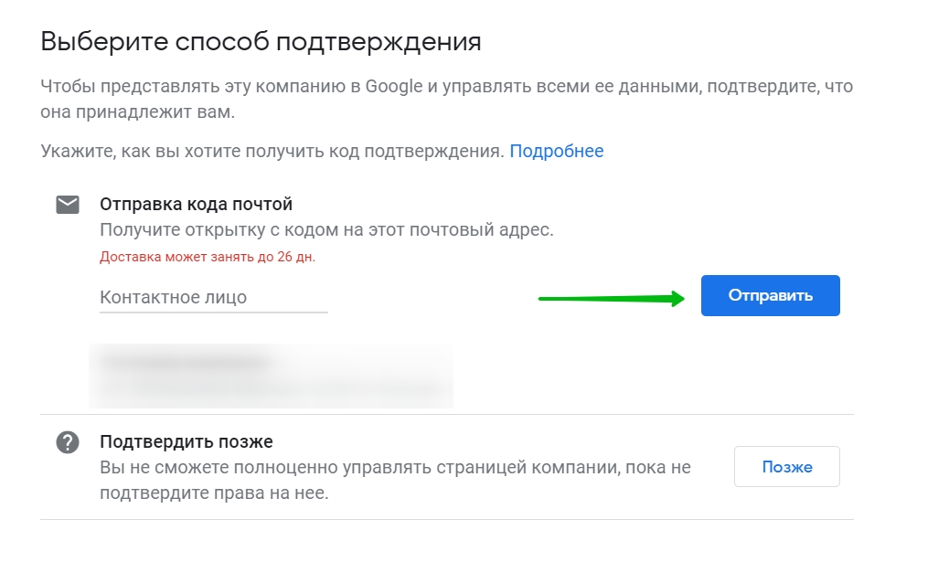 Затем на фактический адрес компании отправляется открытка с кодом. Его нужно будет ввести для завершения регистрации. Как вариант подтверждение данных бывает по телефону или электронной почте. На усмотрение Google.