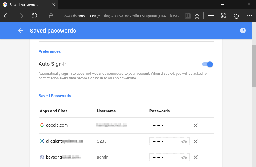 Ваши пароли сохраняются в вашей учетной записи Google. Чтобы просмотреть список учетных записей с сохраненными паролями, перейдите на passwords.google.com в любом браузере или просматривать свои пароли в Chrome. Для просмотра паролей необходимо снова войти в систему.