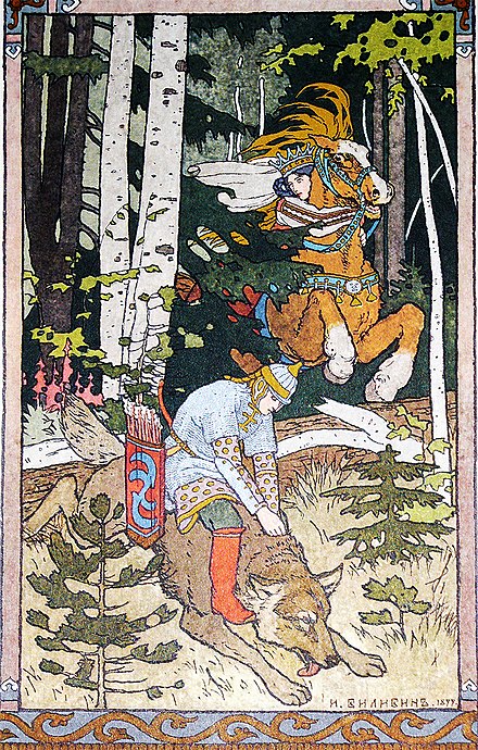 Первую иллюстрацию Билибин нарисовал еще в 1899 году к «Сказке об Иване-царевиче, Жар-птице и о Сером волке». На протяжении сорока лет художник обращался к русским народным сказкам и былинам. Его рисунки жили и на страницах детских книг, и на театральных площадках Петербурга, Праги, Парижа.