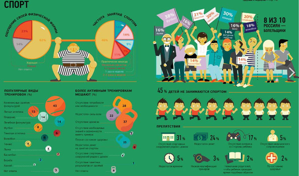 А еще, инфографика в наглядно демонстрирует процентную статистику c использованием радиальных (круговых) диаграмм.