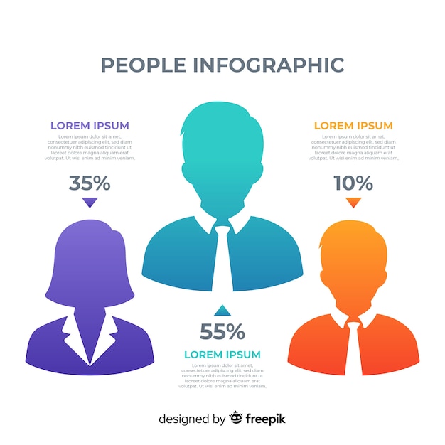 Инфографика с людьми — это та, в которой человеческие фигуры определяют повествование. Это делается с помощью фотографий, значков, пиктограмм, иллюстраций или аватаров. Хотя этот подход является идеальным способом привнести эмоции в истории, основанные на цифрах, инфографика о людях также может использоваться для тем, которые меньше зависят от данных.