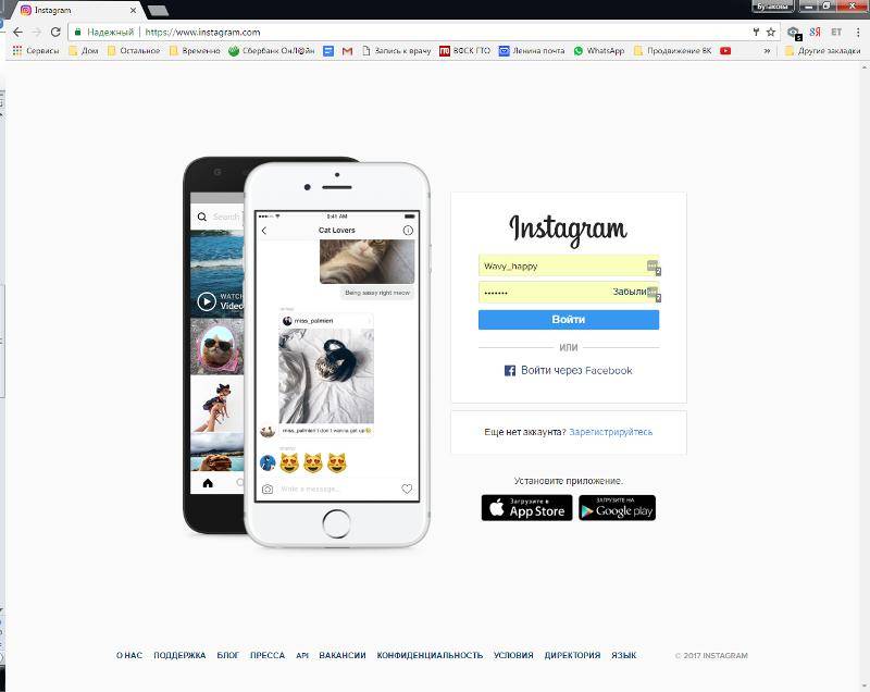 - Попробуйте войти через Facebook. Если есть привязка к профилю в ФБ, авторизуйтесь через него. Это может помочь, если причина сбоя техническая: если проблемы есть на стороне Instagram.
