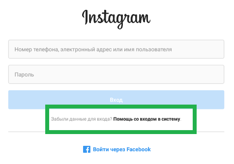 Как восстановить пароль в Instagram с помощью «забыл пароль»