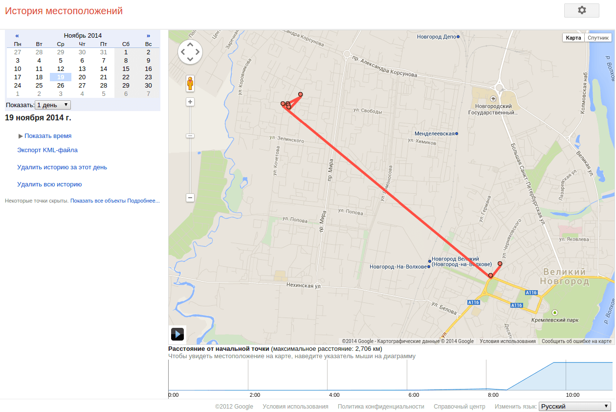 Π‘Π΄Π΅Π»Π°ΡΡ ΡΡΠΎ ΠΏΡΠΎΡΡΠΎ β Π΄ΠΎΡΡΠ°ΡΠΎΡΠ½ΠΎ Π·Π°Π»ΠΎΠ³ΠΈΠ½ΠΈΡΡΡΡ Π² Π°ΠΊΠΊΠ°ΡΠ½Ρ Google ΠΈ ΠΏΠ΅ΡΠ΅ΠΉΡΠΈ Π² Google Maps Π½Π° ΡΡΡΠ°Π½ΠΈΡΡ ΠΈΡΡΠΎΡΠΈΠΈ ΠΌΠ΅ΡΡΠΎΠΏΠΎΠ»ΠΎΠΆΠ΅Π½ΠΈΠΉ. Π’ΡΡ Π²Ρ ΡΠ²ΠΈΠ΄ΠΈΡΠ΅ ΠΊΠ°ΡΡΡ Ρ Π»ΠΈΠ½ΠΈΡΠΌΠΈ ΡΠ²ΠΎΠ΅Π³ΠΎ ΠΏΠ΅ΡΠ΅ΠΌΠ΅ΡΠ΅Π½ΠΈΡ Π² ΡΠ΅ΡΠ΅Π½ΠΈΠ΅ ΡΡΡΠΎΠΊ ΠΈ ΠΊΠ°Π»Π΅Π½Π΄Π°ΡΡ Ρ ΠΈΡΡΠΎΡΠΈΠ΅ΠΉ Π·Π° Π»ΡΠ±ΠΎΠΉ Π΄Π΅Π½Ρ.