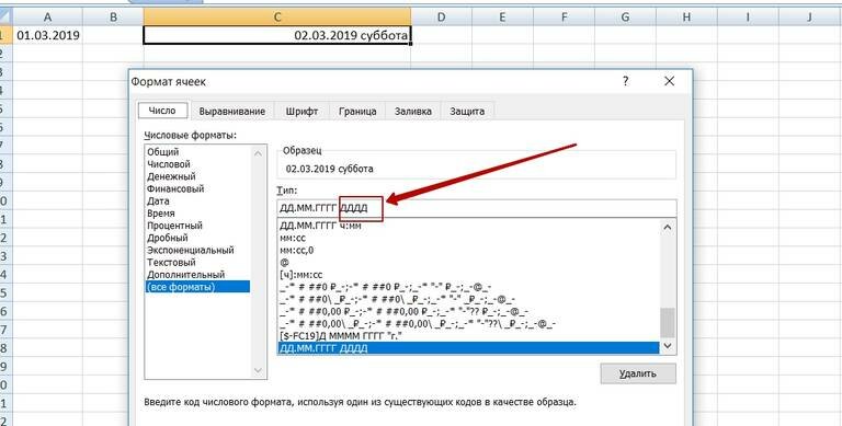 Выполняем те же действия, что и в предыдущем пункте, но в окне Формат ячеек выбираем на вкладке Число опцию (все форматы).