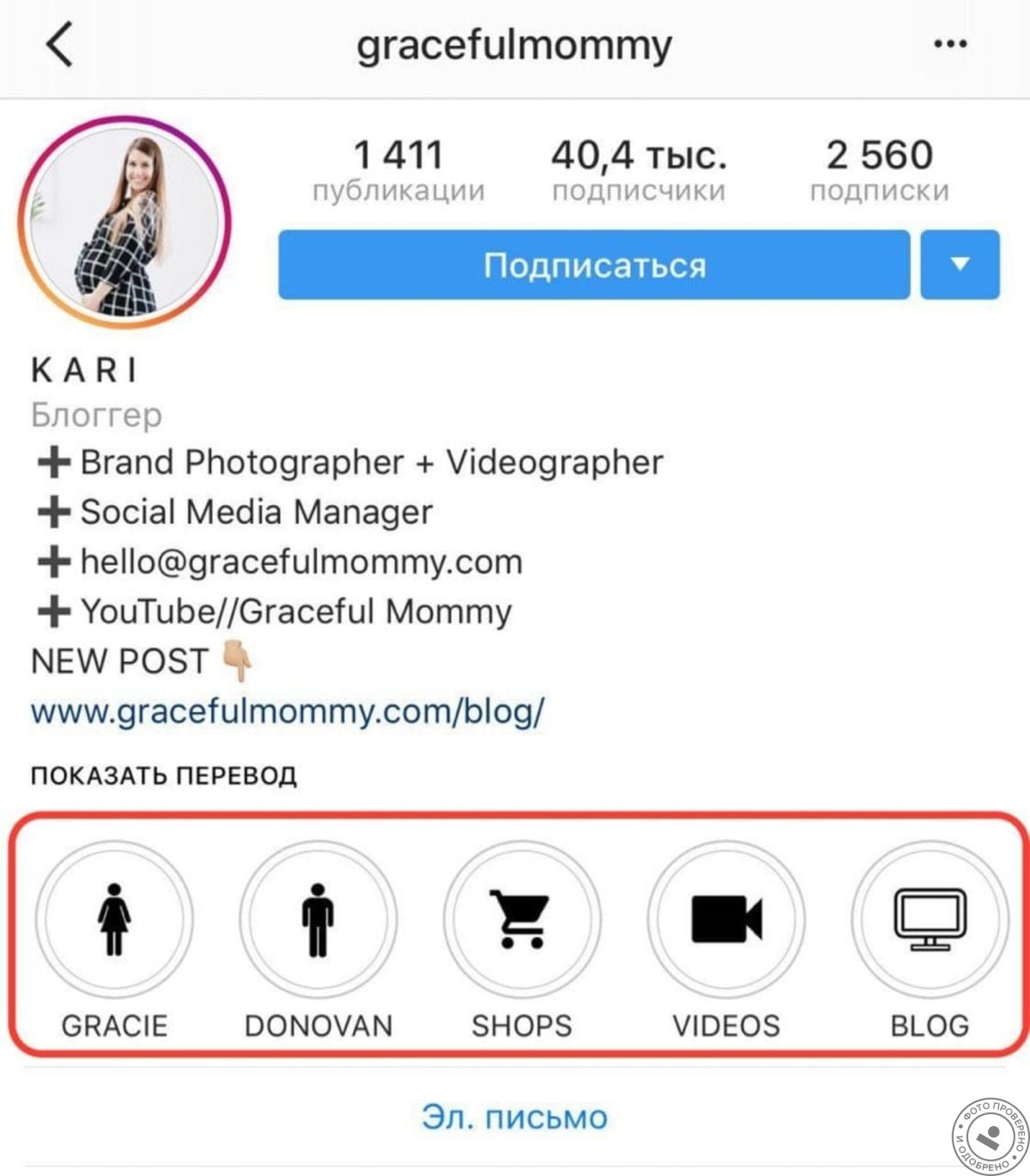 Отметки в описании к постам. Мы можем видеть, кого блогер рекламировал, как продвигал свой аккаунт и какие аккаунты упоминал по дружбе (бесплатно), это, кстати, очень полезно знать, так как у них похожая аудитория.
