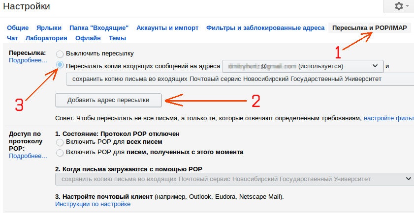 - Перейти на вкладку «Пересылка и POP/IMAP».