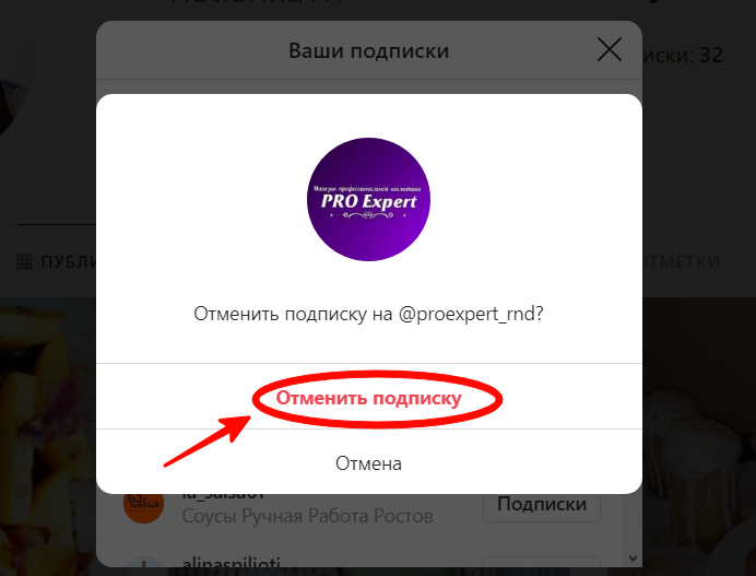 А потом подтверждаем решение отказаться от подписки на этот профиль.