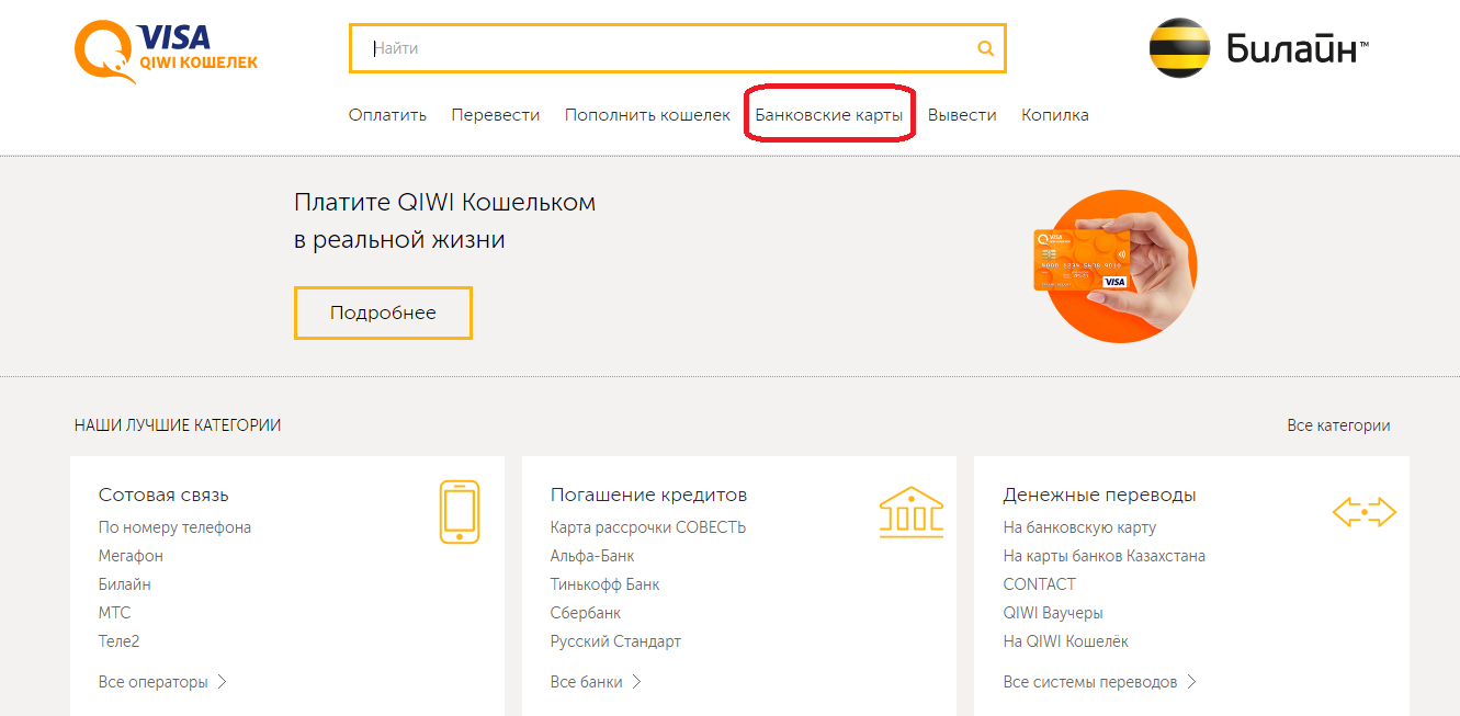 Вывод средств с Qiwi кошелька при помощи банковской карты