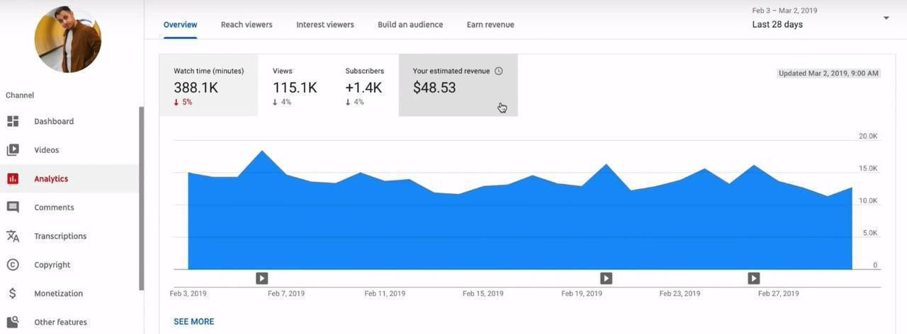 Предполагая, что влиятельные лица уже имеют настроенный канал YouTube, увеличение количества подписчиков и просмотров на видео увеличивает компенсацию.