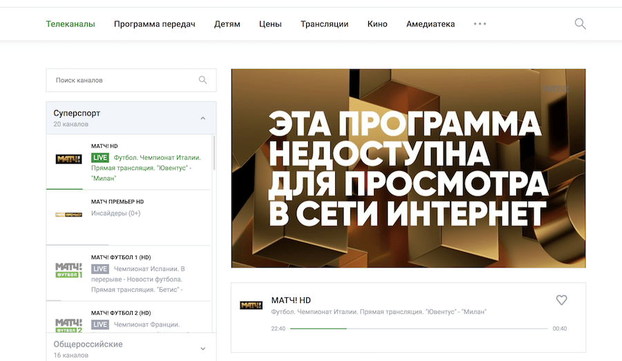 «Матч ТВ» ограничивает доступ к своему контенту за пределами России.