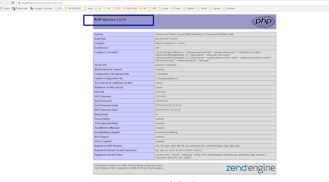 Это должно предоставить информацию о том, какую версию PHP вы используете в настоящее время, когда она была создана, данные об авторских правах и т.