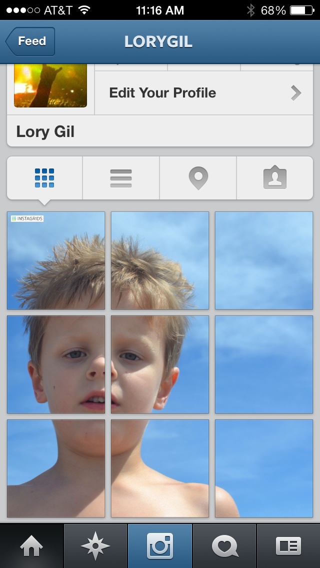Сохраните каждый квадрат как отдельный файл, а затем загрузите их в Instagram в правильном порядке.