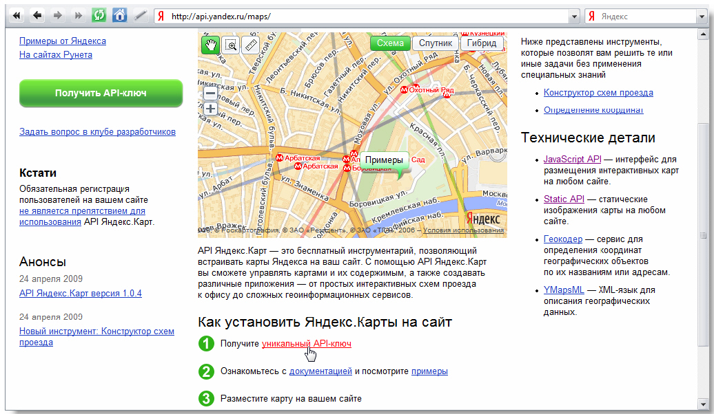 API Яндекс Карт — программный интерфейс для установки Яндекс Карт и необходимых инструментов для работы с ними в вашем веб-приложении или на сайте.