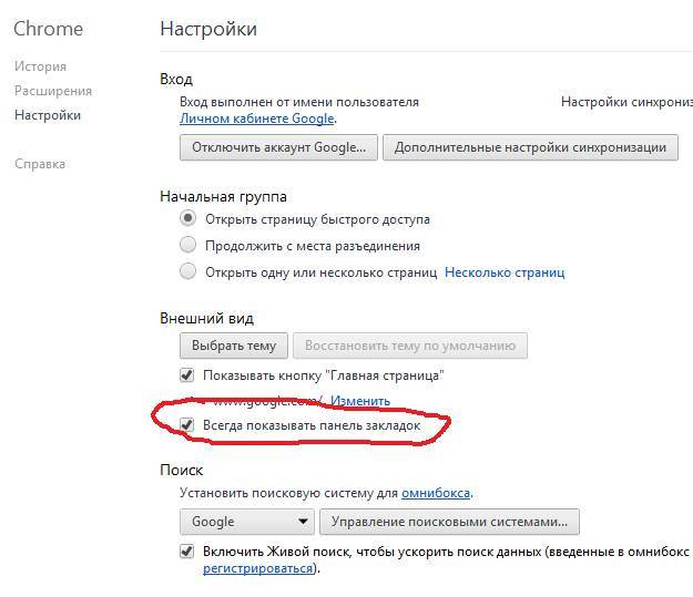 - Активируйте тумблер «Показывать панель закладок», после чего они тут же появится под поисковой строкой.